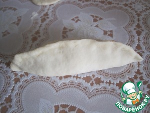 • Раскатываем 14 овальных лепешек, укладываем фарш