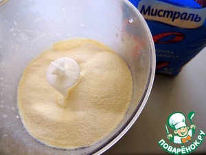 Добавить манную крупу, перемешать и оставить набухать на 40 минут.