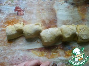 Затем кладем лепешку на стол с мукой и формируем булочку ( так как тесто мягкое и может порваться) -