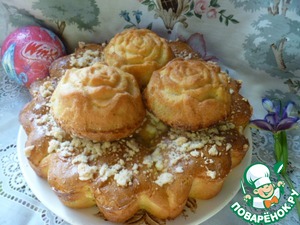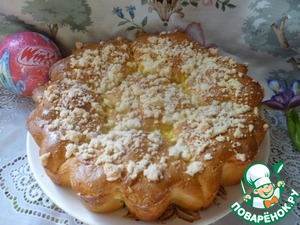 Я смазала его взбитым яйцом с молоком и посыпала штрейзельной крошкой. -