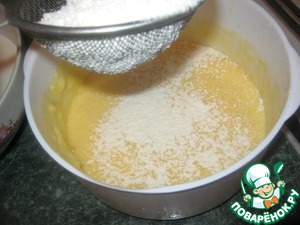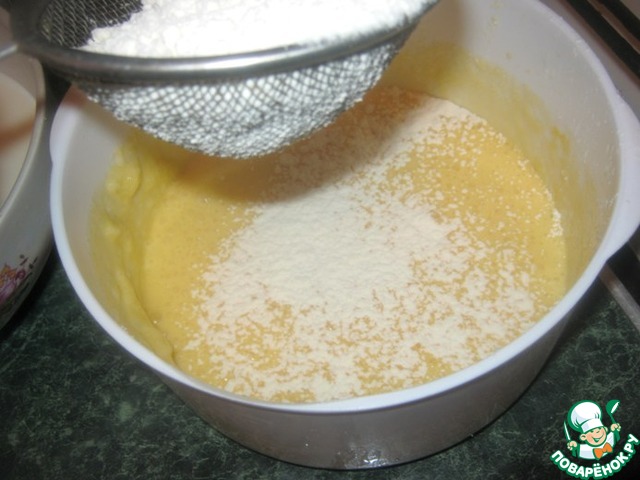 К смеси добавляем просеянную муку, авмешиваем