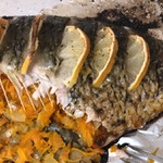 Делаем надрезы с боковой стороны туловища, после чего солим и сбрызгиваем карпа соком лимона. Затем обильно смазываем карпа смесью из подсолнечного масла, орегано и чеснока, которую делали ранее.
