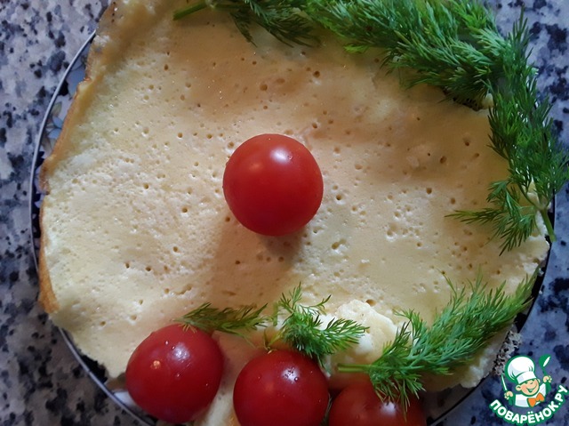 Выливаем омлетную смесь, огонь переключаем на минимальный, и накрыв крышкой, готовим около 15 минут.