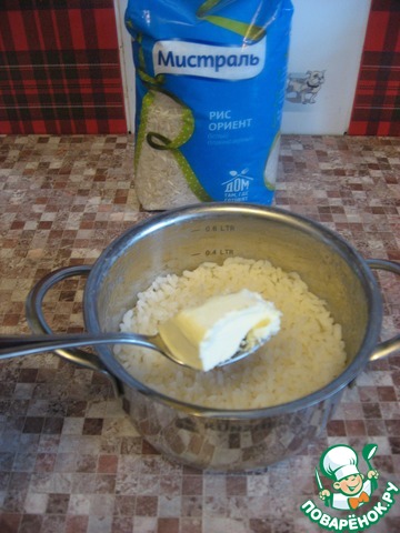 Для начинки я использовала рис ТМ "Мистраль" - "Ориент". Его нужно отварить в подсоленной воде -