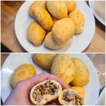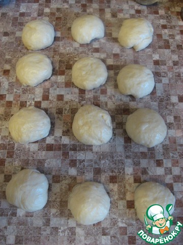Раскатать шарики в лепешечки и положить на каждую по 1 ст. л. начинки