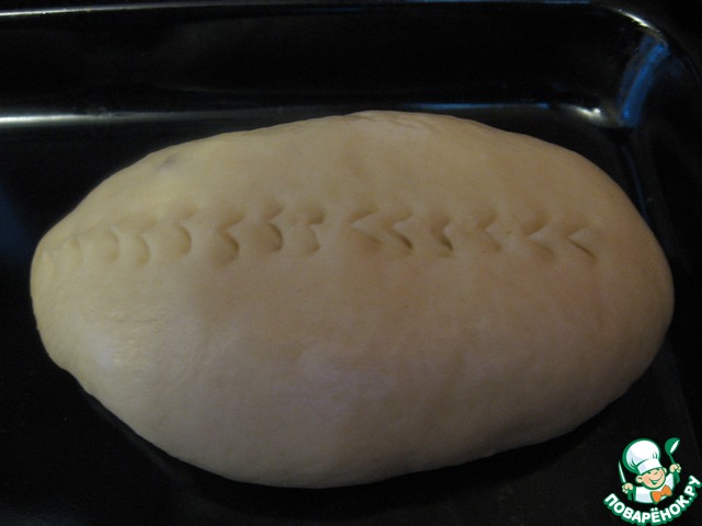 Залепить пирожки и уложить их на смазанный маслом противень швом вниз.