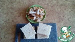 Для начала обрезаем края у наших тостов, обрезки откладываем в отдельную тарелку.