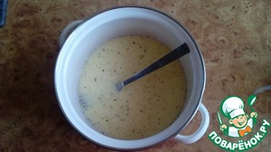 Замешиваем яично - молочную смесь: для этого два яйца взбиваем вилкой, вливаем молоко, солим, перчим (я добавляю приправу "Мивина"). Размешиваем до однородности.