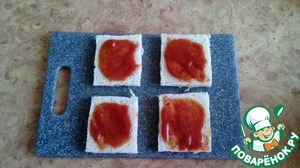 Смазываем тосты кетчупом.