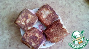 Выкладываем ломтик колбасы и сыра, накрываем все это дело тостом, слегка придавливаем. Далее обмакиваем с каждой стороны в яично - молочную смесь, обваливаем в панировочных сухарях и отправляем на разогретую сковородку!