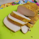 Я нарезала еще теплую (не выдержала, любопытство взяло верх). Получается ооочень нежное мясо...
