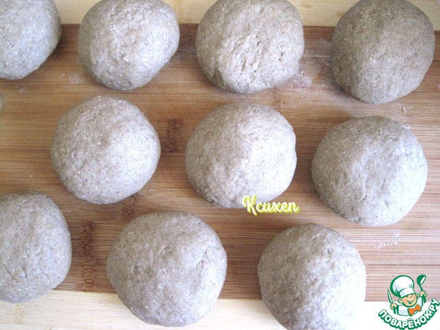 Разделим тесто на равные кусочки. У меня получилось 10 кусочков весом 96 грамм каждый. Сформуем сначала шарики...