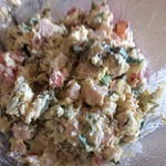 Оооооочень вкусный салатик, который украсит любой стол, в том числе и праздничный! А самое главное преимущество этого салата в том, что он заправляется не майонезом, а сметаной, хотя мой любитель майонеза этот даже не почувствовал! Салатик очень нежный и почти диетический! :)