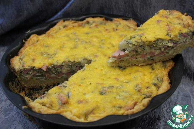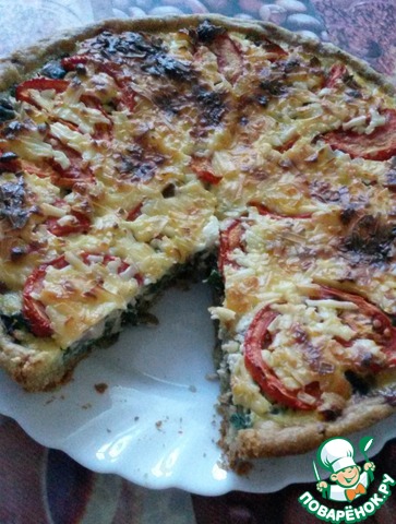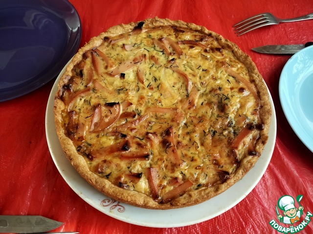 Только не смейтесь, но этот рецепт был увиден мной в передаче "Контрольная закупка" и очень понравился простотой и быстротой приготовления и интересным сочетанием! Я конечно ожидала, что пирог получится вкусный, но чтоб настолько! Пока он еще запекался-аромат стоял такой, что хотелось залезть в духовку и слопать его!!)) И как правильно заметил шеф-повар, автор рецепта: ингридиенты для этого прекрасного пирога найдутся на любой кухне!