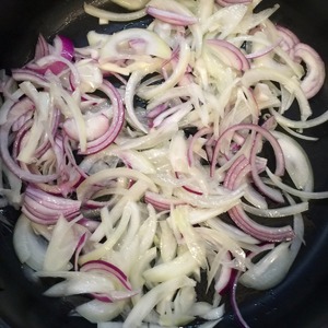 Лук, нарезанный полукольцами, кладем в сковороду с небольшим количеством масла и на среднем огне тушим-жарим минут 7, пока из лука не выйдет вся горечь. Чеснок туда же.