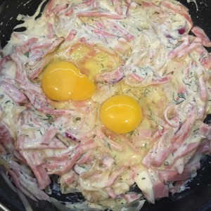 Во второй добавила на дно оставшуюся от завтрака пюрешку. Блюдо ничуть не испортилось, даже выше стало, а соответственное - больше)))