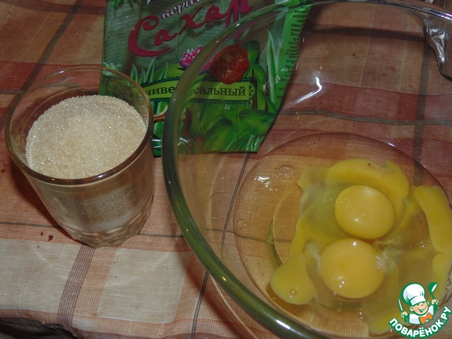 Сливочное масло растопить в микроволновке и влить к яйцам с сахаром. Перемешать.