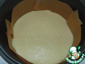 Готовое тесто вылить в чашу мультиварки, смазанную маслом или застеленную бумагой. Поставить на программу выпечка на 60-70 минут.