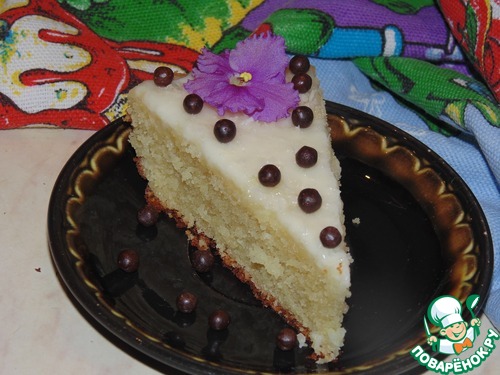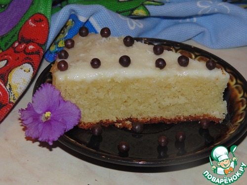 Самый обычный манник, но смазанный сверху сметанным кремом. Очень простая и вкусная выпечка.