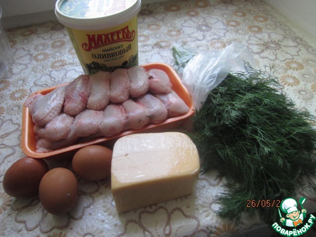 Ингредиенты для «Куриные крылышки под сырным соусом»: