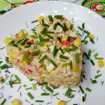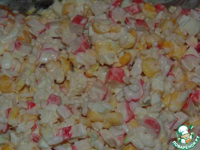 Давно не готовила салат из крабовых палочек, сейчас его выхватила глазами на сайте и, как понимаете, медлить с приготовлением было выше всяких сил.