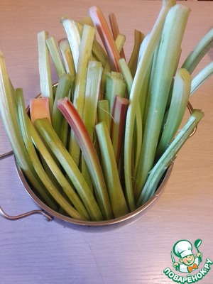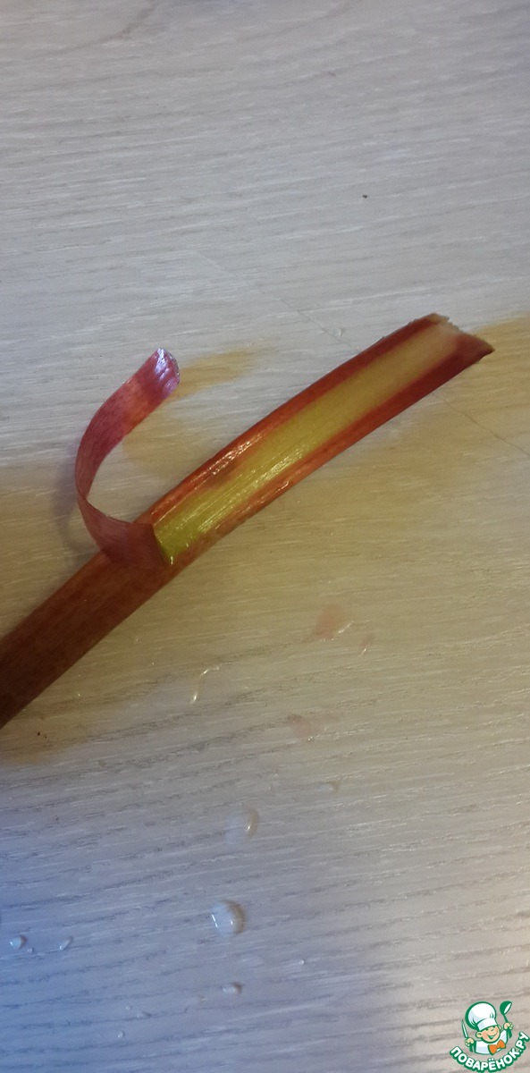 Итак, ревень. Его нужно хорошо промыть и очистить от грубой плёнки