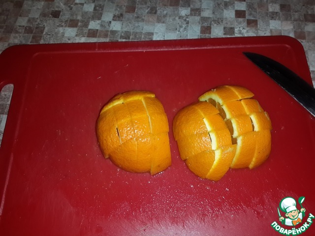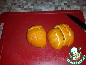 Апельсины также нарезаем на кусочки, косточки обязательно удаляем
