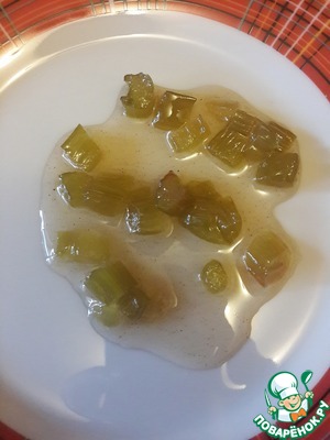 первый раз - ставим на плиту сырой (пустивший сок) ревень, даем хорошо-хорошо закипеть, кипятим 1 минуту, снимаем с огня и полностью остужаем до комнатной температуры