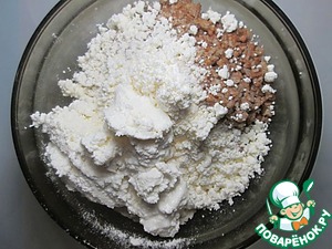 Добавьте к гречке творог и муку, тщательно перемешайте.