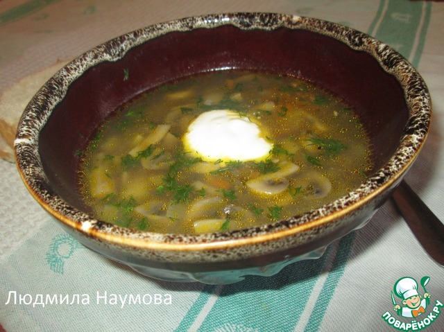 При подаче посыпьте похлебку рубленой зеленью. Сметану подавайте отдельно.