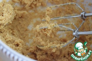 125 г мягкого сливочного масла (масло заранее вынуть из холодильника) взбить с 125 г коричневого сахара и щепоткой соли до гладкого, кремообразного состояния.