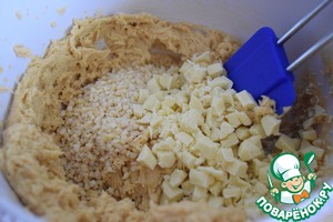 В тесто добавляем орехи и шоколад - тщательно перемешиваем.