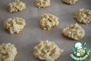 Противень тонко смазать сливочным маслом (я застелила бумагой для выпечки) и с помощью 2-х чайных ложек выкладываем печенье, на расстоянии друг от друга - не плотно. Расплющивать или придавать идеальную форму не нужно, печенье само разойдётся вширь.