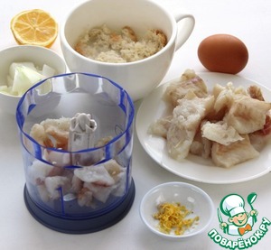 Приготовьте рыбный фарш для фрикаделек. Замочите белый хлеб в молоке. Натрите 2 ч. л цедры лимона, выложите в чашу процессора, добавьте филе трески или другой рыбы, сырой белок, небольшую луковицу, отжатый от молока хлеб и измельчите все в фарш.