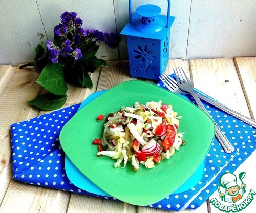 Вкусный, простой и сочный овощной салатик. Отлично подойдет для пикника или к шашлыку. Достаточно пикантный и легкий.