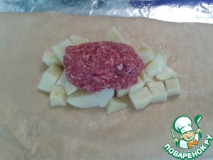 Из фарша слепить котлету и положить на картошку. -