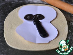 Заранее вырезанный из бумаги трафарет приложить к тесту.