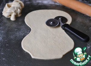 Одну часть теста раскатать в овал толщиной примерно 7 мм.