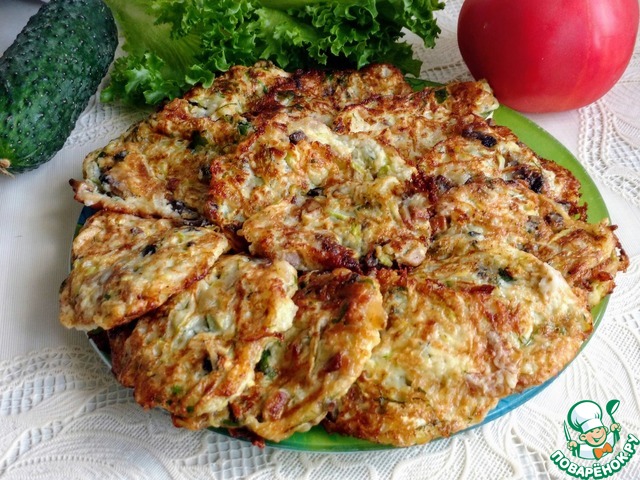 Думаю, что многие из вас готовили оладьи из кабачков. А пробовали ли вы, кабачковые оладьи с грибами? Если нет, то непременно советую это исправить. Нежные, вкусные оладушки из молоденького кабачка с легким грибным ароматом - объедение!