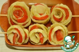 Если готовите на противне, достаточно одной шпажки. если на мангале, то нужно одеть на 2, чтоб наши розы не крутились на шпажке.