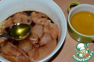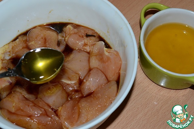Выложить куриную грудку в соус.