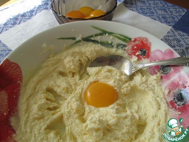 Взбить белки в крепкую пену и аккуратно соединить с основной массой. Старайтесь не очень усердствовать в перемешивании, чтобы в тесте остались пузырьки воздуха.