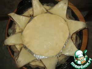 Выкладываем в серединку. Возможно будет зазор-скатайте жгутик и выложите вокруг центра. Оставить для растройки минут на 30