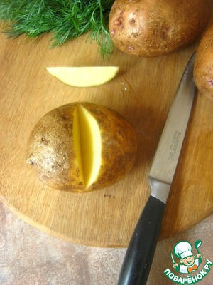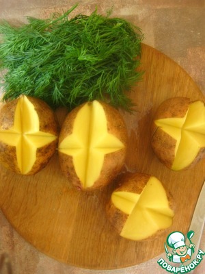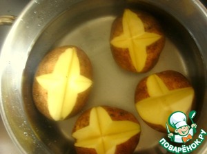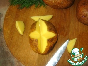 Картошку моем, и делаем продольный разрез конусом-как на фото