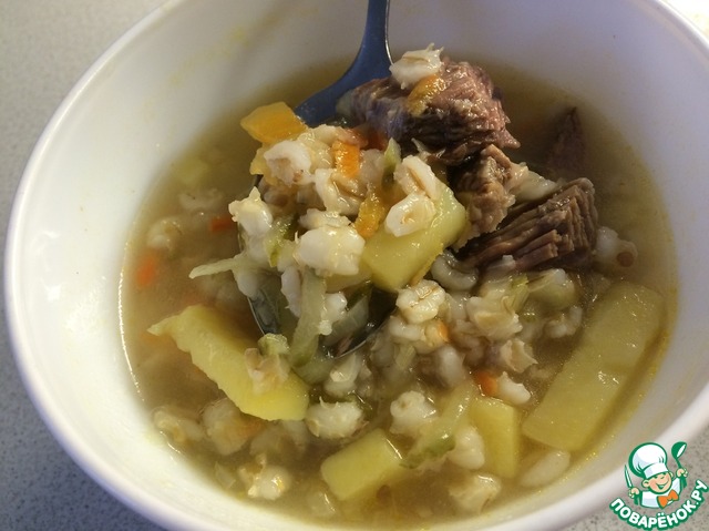 Рецепт «Рассольник с перловкой и солеными огурцами»: