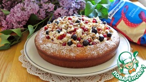 Украшаем сверху ягодой, которую оставили, крошкой из "корочки" манника, орешками и сахарной пудрой! Убираем на часок в холодильник и наш торт-манник "На пороге лета" - готов!