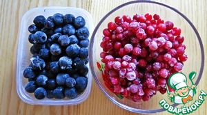 Ягоды. Про ягоды хочу сказать отдельно. Нужно использовать те ягоды, которые будут держать свою форму после размораживания. Т. е. замороженная малина и клубника - вряд ли подойдут, т. к. они пустят очень много сока и потеряют свой вид, а вот свежие - подойдут идеально! В этот раз я взяла остатки заморозки - бруснику и черную смородину. Их нужно полностью разморозить.