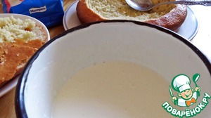 Теперь приготовим сметанный крем. Сметану взбиваем с сахарной пудрой (или сахаром) и ванильным сахаром. Крем готов.