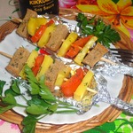 Описание: Ароматный шашлык из овощей и хлебных сухариках со специями.