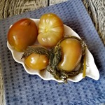 Спустила сегодня 10-л эмалированное ведро и 5-л банку ваших помидорчиков сразу в погреб. Там еще сейчас не слишком холодно, надеюсь, процесс заквашивания пройдет нормально, с результатом мне не спешить, приеду только к декабрю.